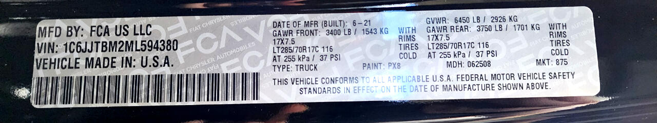 Vehicle Inquiry for 2021 Jeep Gladiator Rubicon 4x4