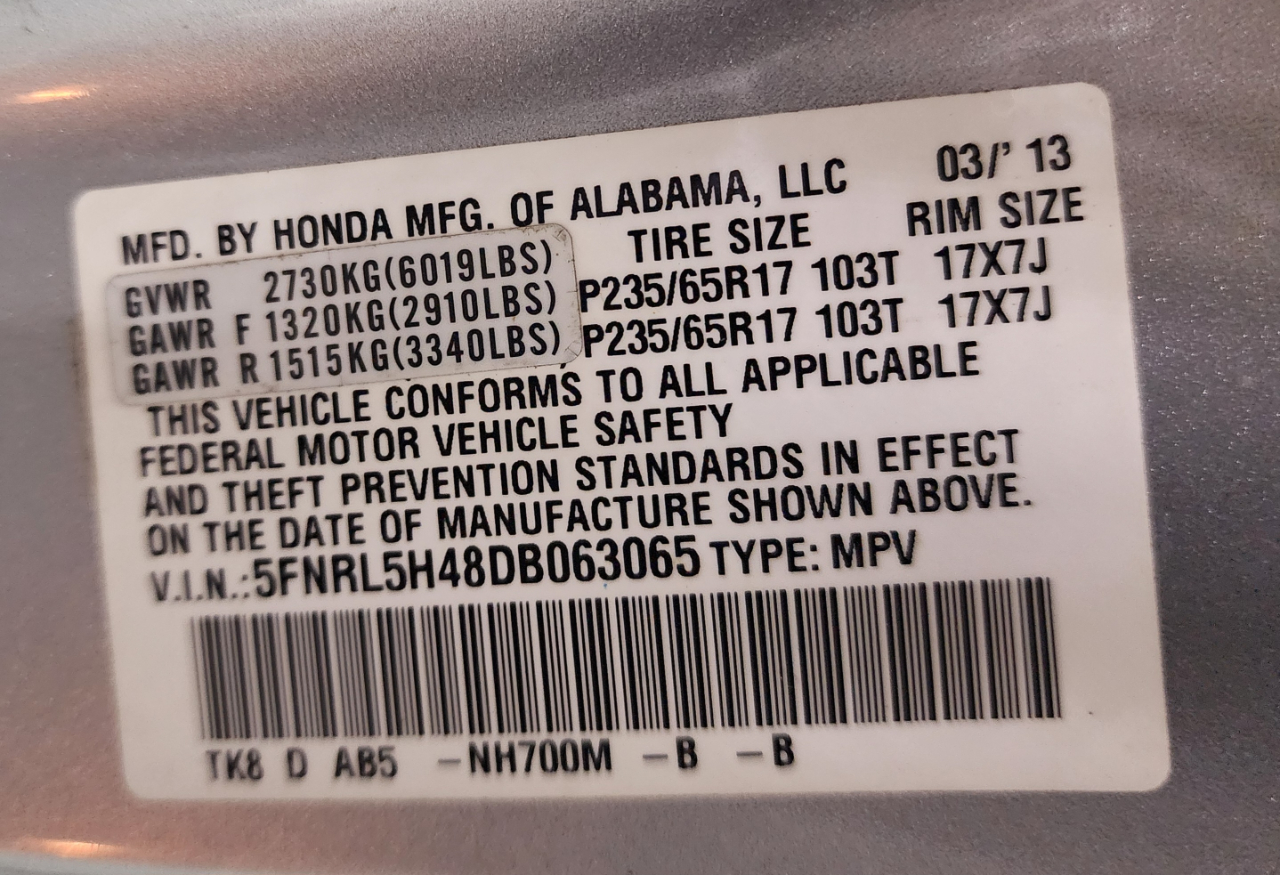 Vehicle Inquiry for 2013 Honda Odyssey 5dr EX
