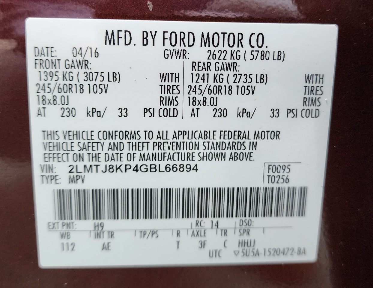 Vehicle Inquiry for 2016 Lincoln MKX AWD 4dr Select